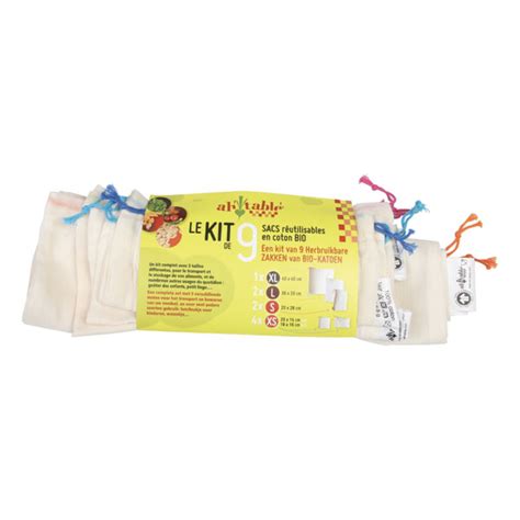 Kit de 9 sacs à vrac réutilsables en coton bio